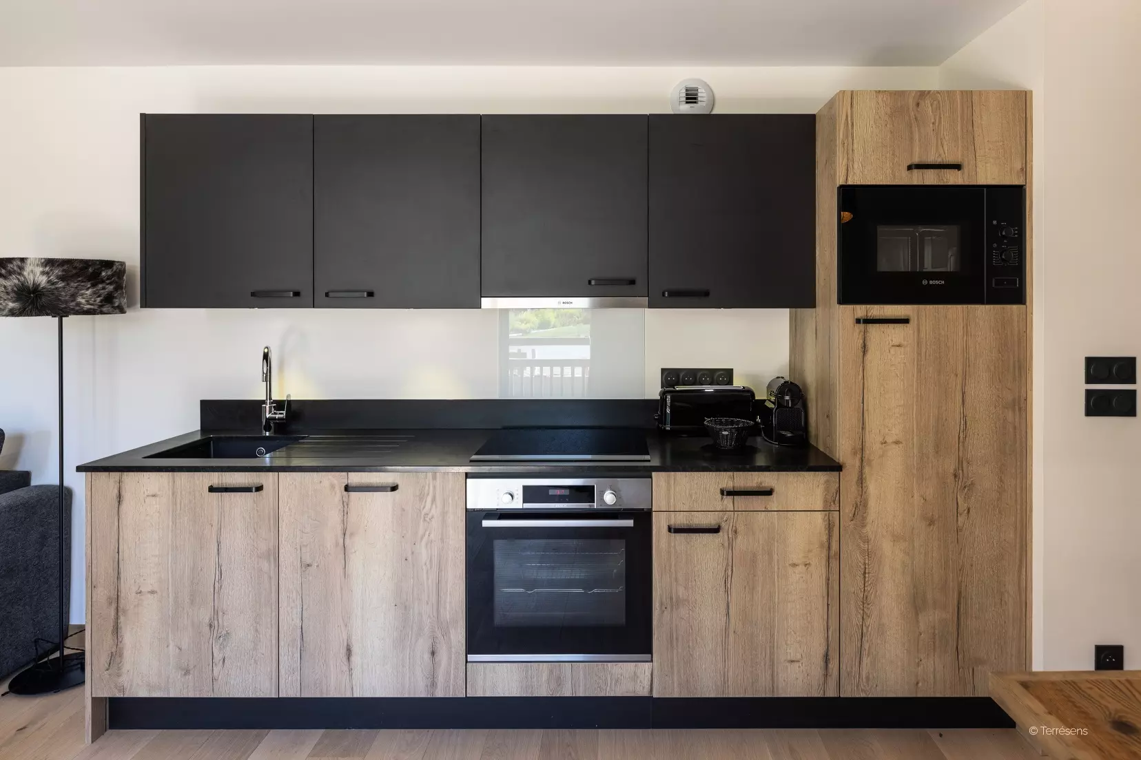 L'équipement comprend une télévision écran plat avec TNT, des plaques vitrocéramiques, un four, un micro-ondes, un réfrigérateur, une cafetière, un grille-pain, une bouilloire et un sèche-serviettes.