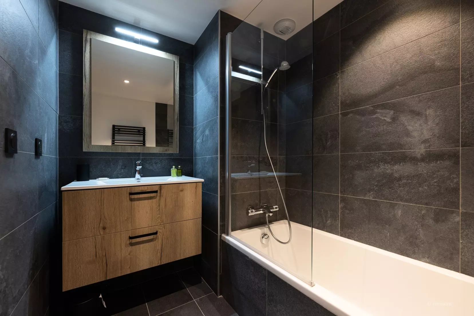 - Salle de bain avec baignoire balnéo et 2 douches.