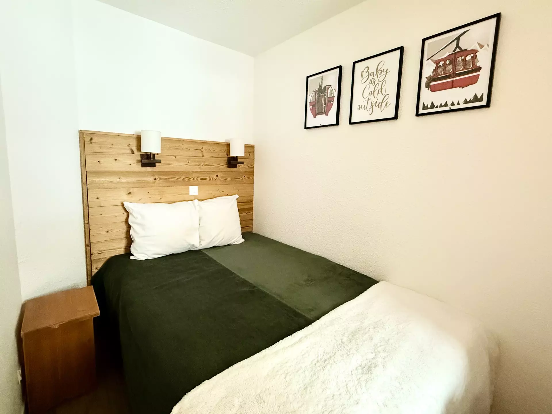 Séjour : 2 lits simples et 1 lit gigogne, 1 téléviseur écran plat