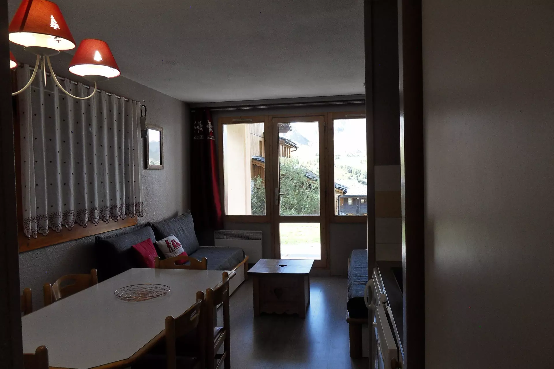 Il est situé au sud ouest et en rez de piste avec une terrasse ouverte.