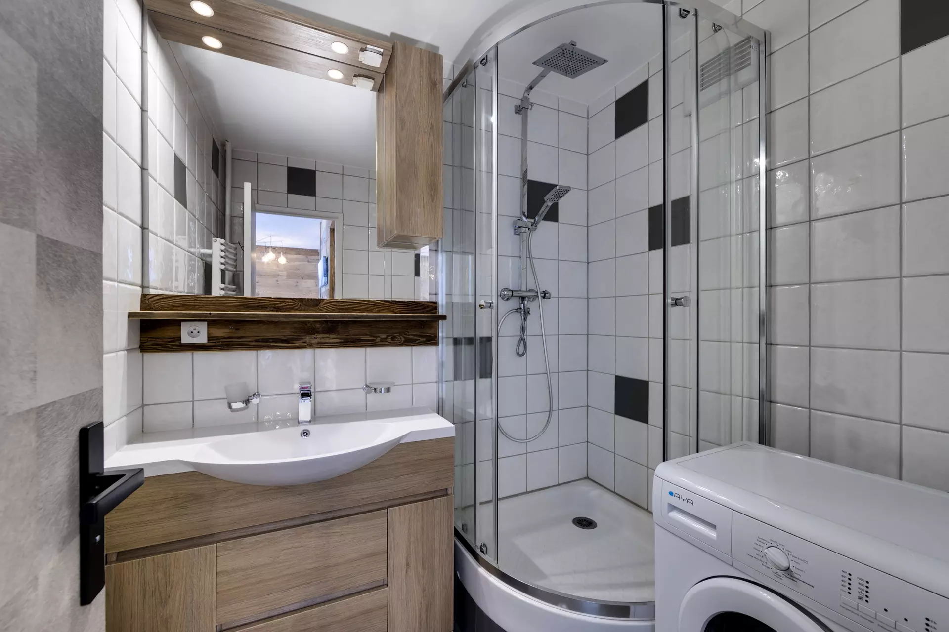 Salle de douche avec machine à laver - WC séparés.