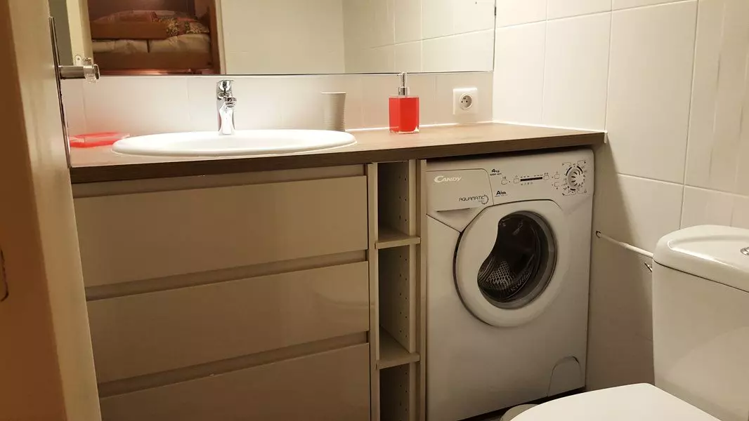 L'appartement est équipé d'un frigo, d'une cafetière électrique senseo, d'une bouilloire, un grille pain, d'une télévision écran plat.