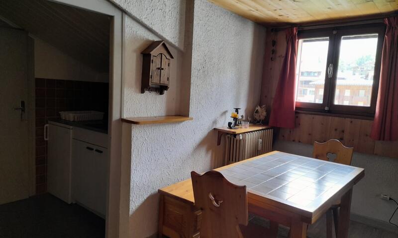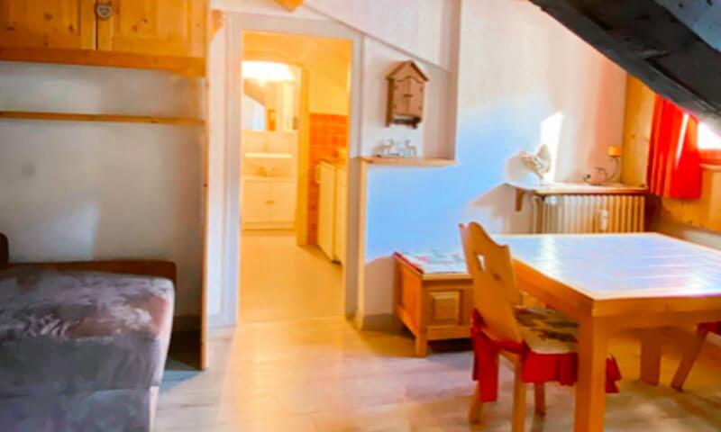 Le studio classé ** sous comble est situé au dernier et 4ième étage (ascenseur jusqu'au 3ieme étage) dans un immeuble en plein cœur du village à coté de l'église. Il fait 23m² et comprend :