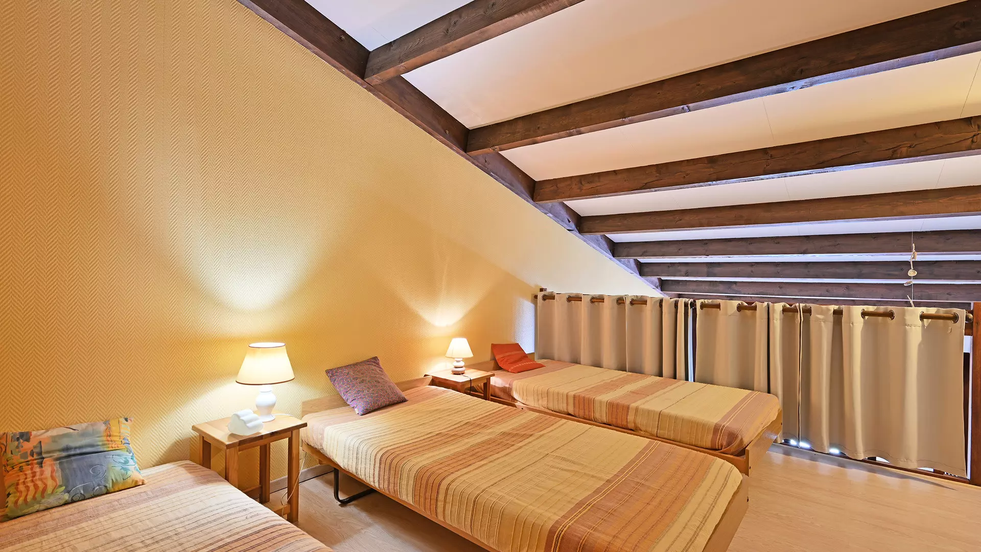 - Mezzanine avec 3 lits en 90 (3x1 pers);