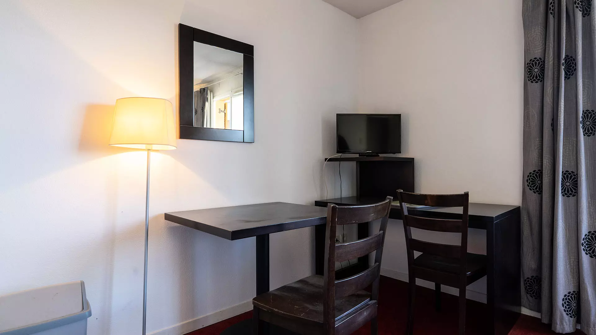 Séjour : deux lits une place, une télévision, une table à manger