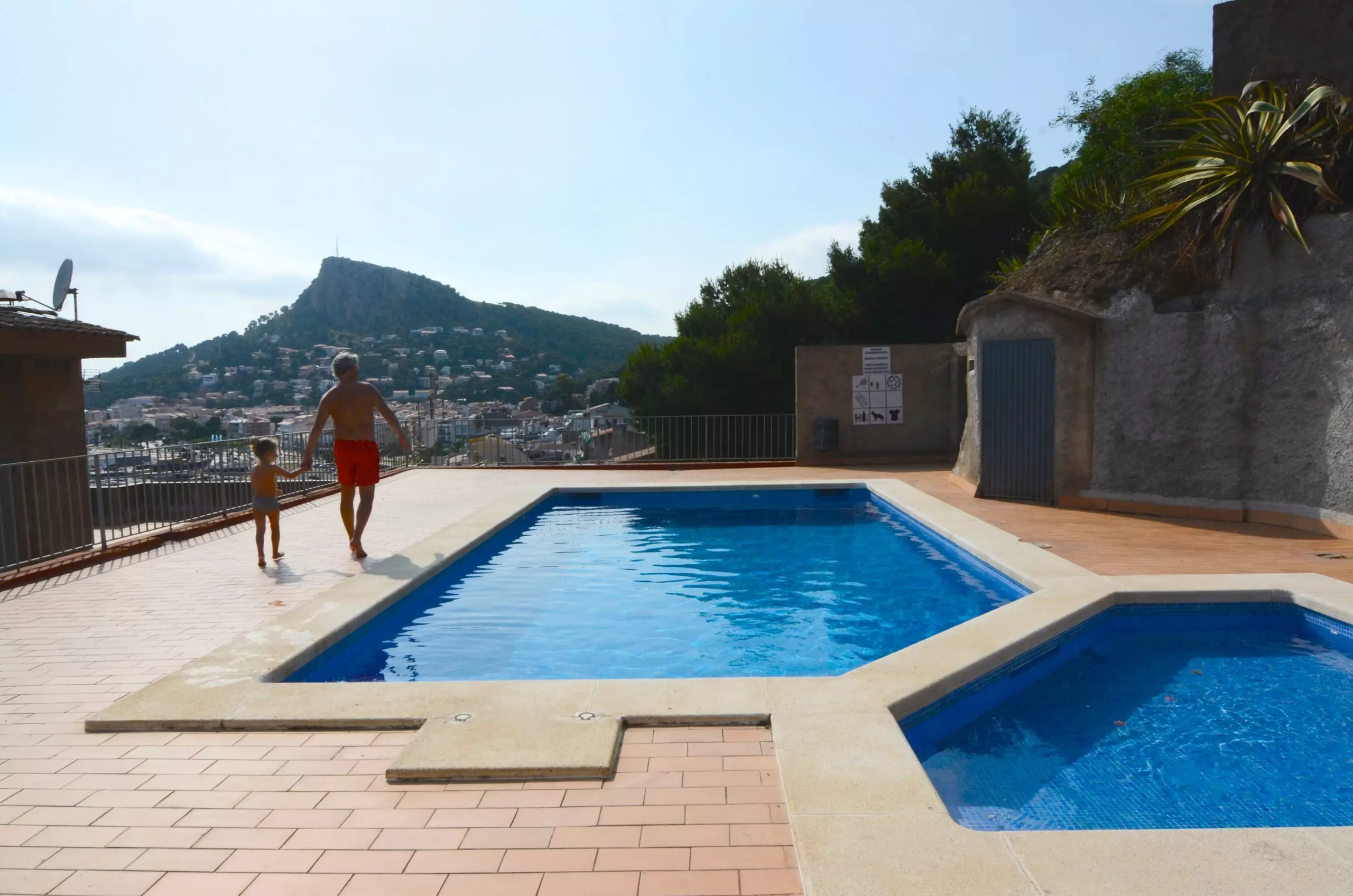 Sur le toit de l'immeuble, il y a une piscine commune et une pataugeoire pour enfants avec les meilleures vues sur la Costa Brava. Les draps sont inclus dans le prix de la location. Si vous le souhaitez, vous pouvez également ajouter des serviettes lors de la réservation moyennant un coût de 5 € par personne. Il y a des escaliers avant d'accéder à l'immeuble.