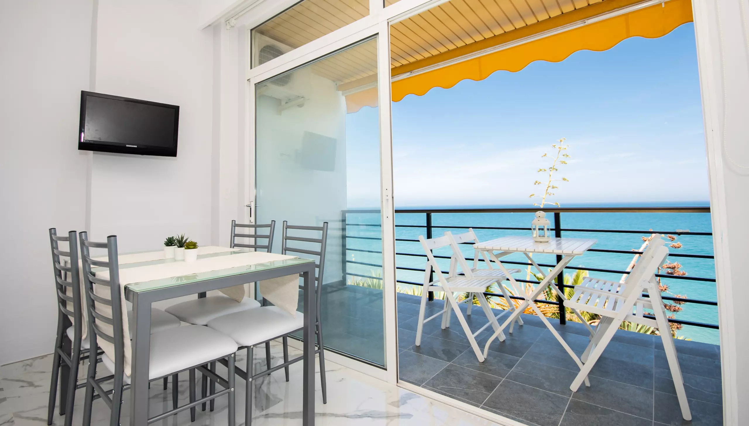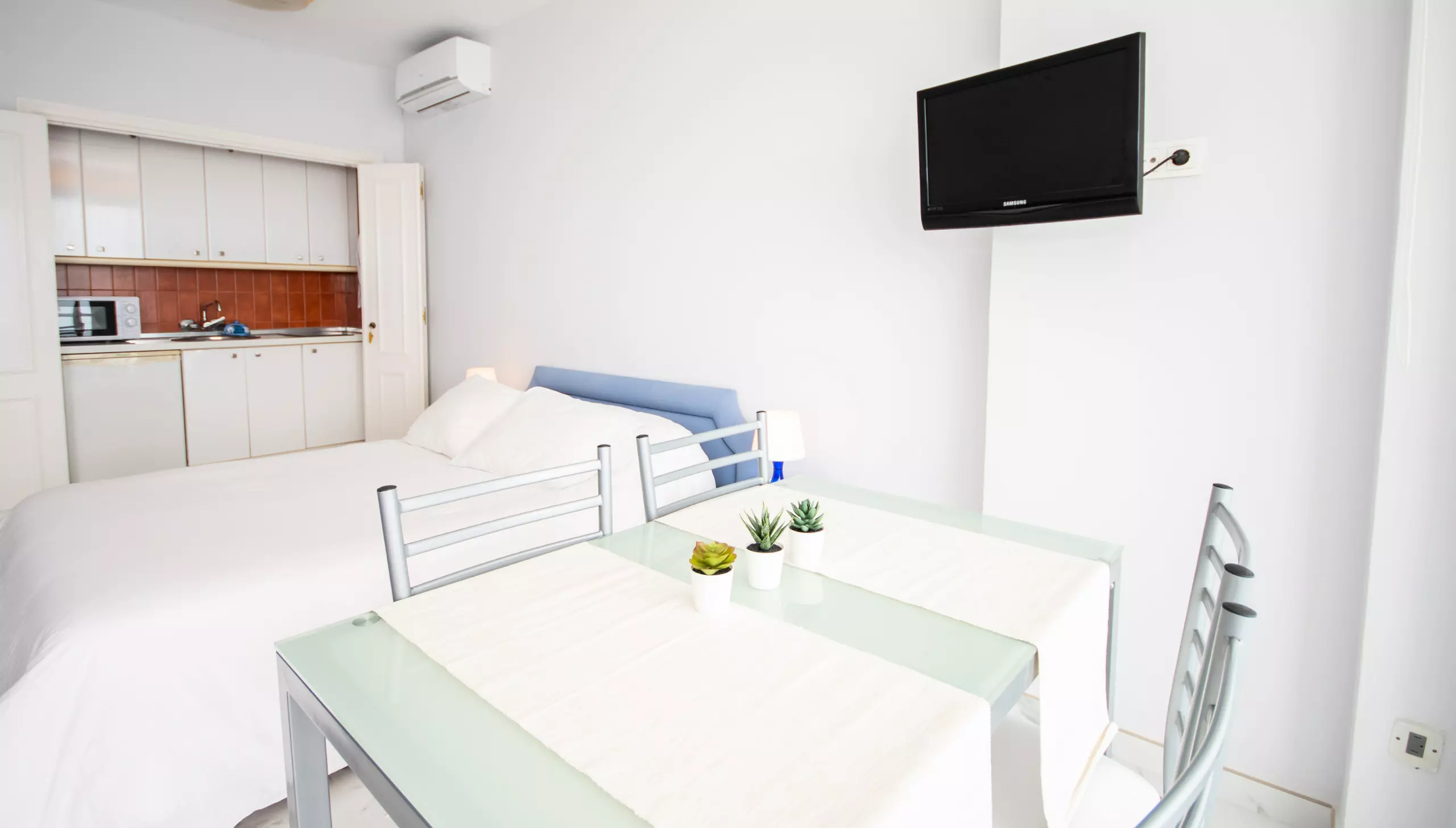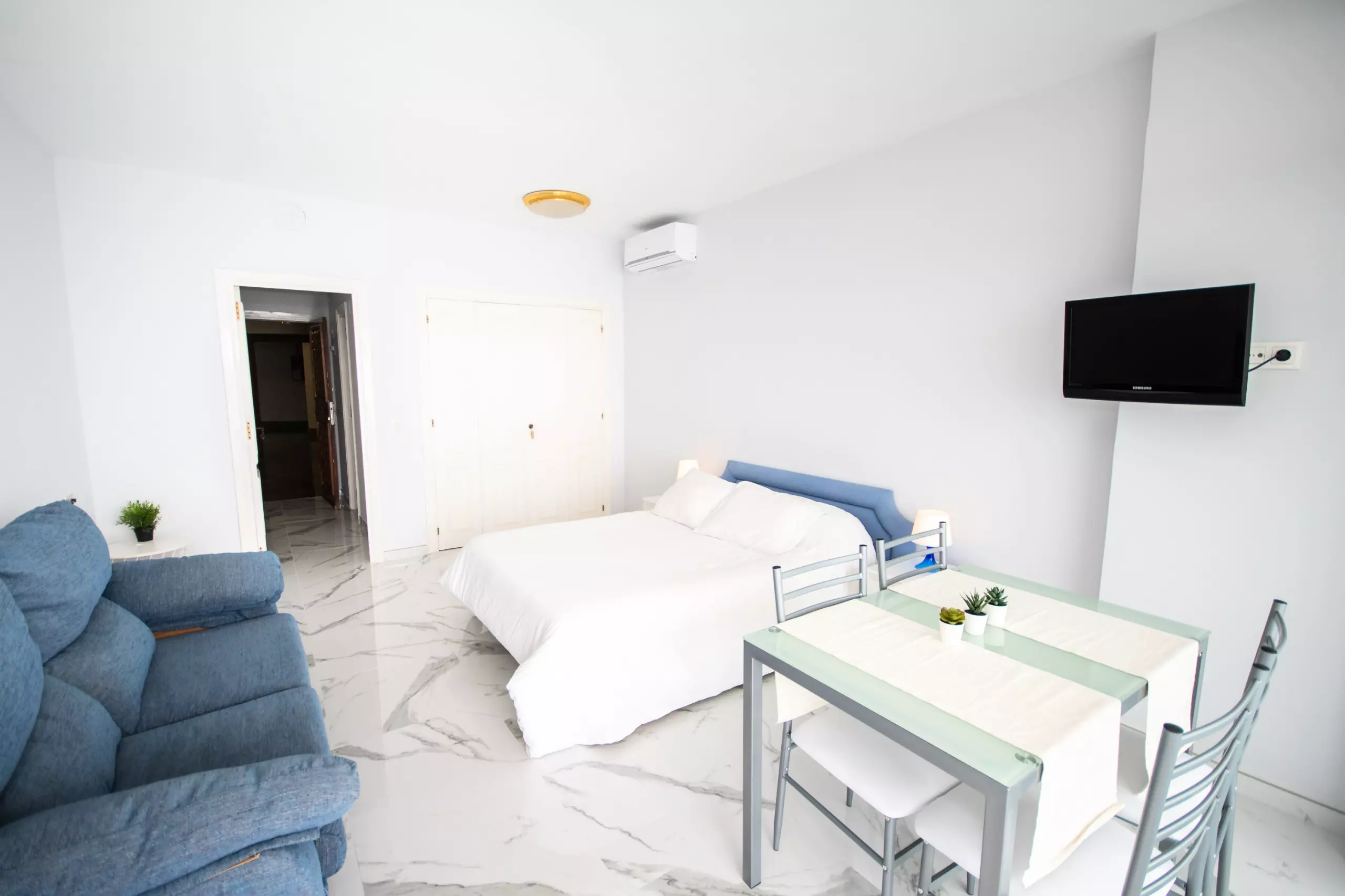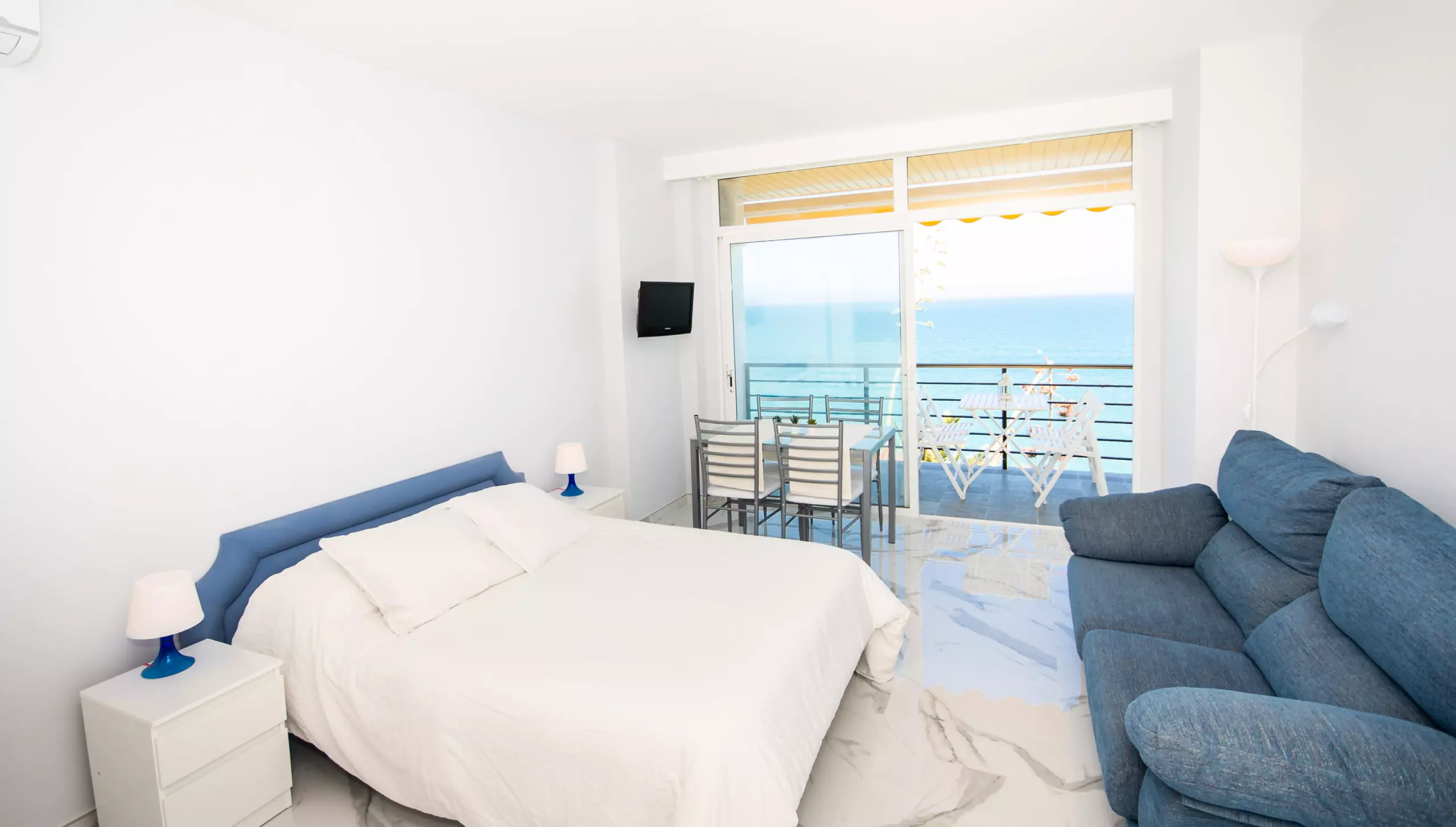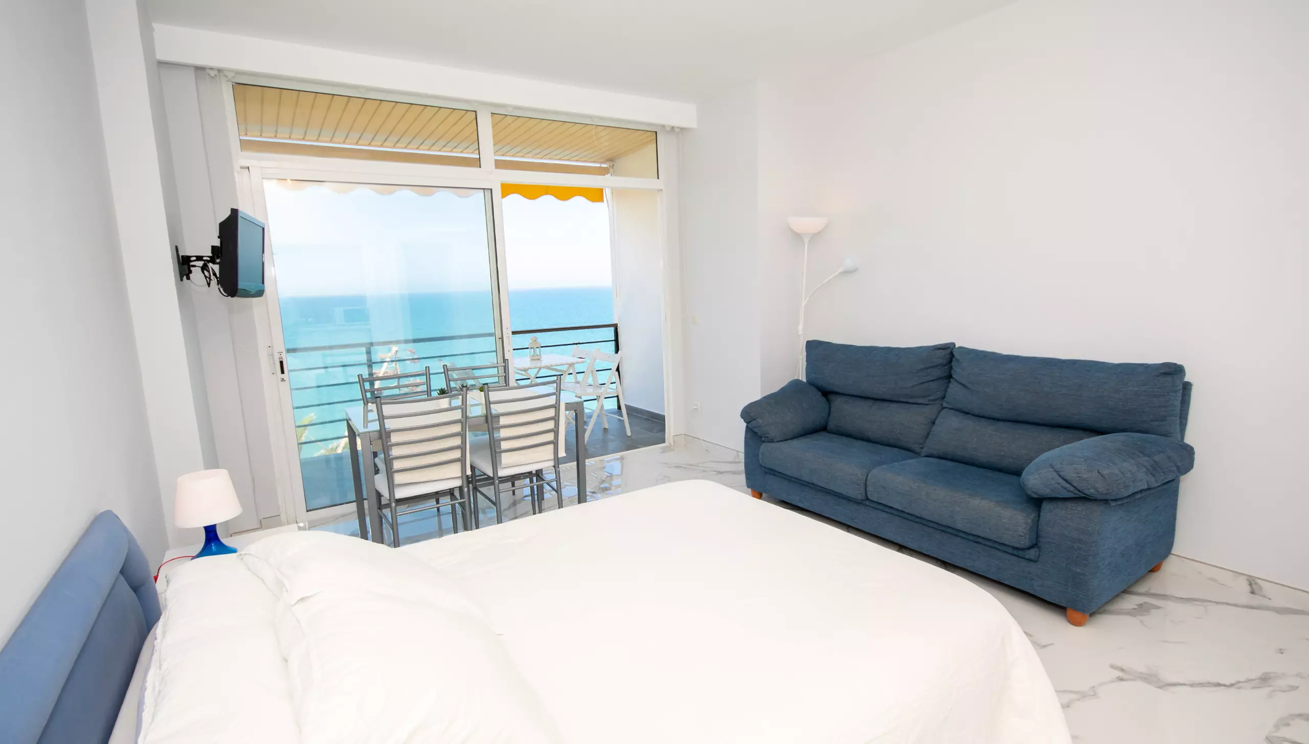 L'étude, rénovée au printemps 2019, se distingue par sa vue incroyable sur la mer depuis son balcon privé et sa terrasse de 10 mètres carrés, où vous pourrez profiter d'un panorama spectaculaire de 180° et des beaux levers de soleil de la Costa del Sol. Le salon-salle à manger comprend un lit de matrimoniale, une table et une chaise, et une cuisine fonctionnelle cachée derrière des portes coulissantes, équipée d'une plaque vitrocéramique pour préparer confortablement vos repas.