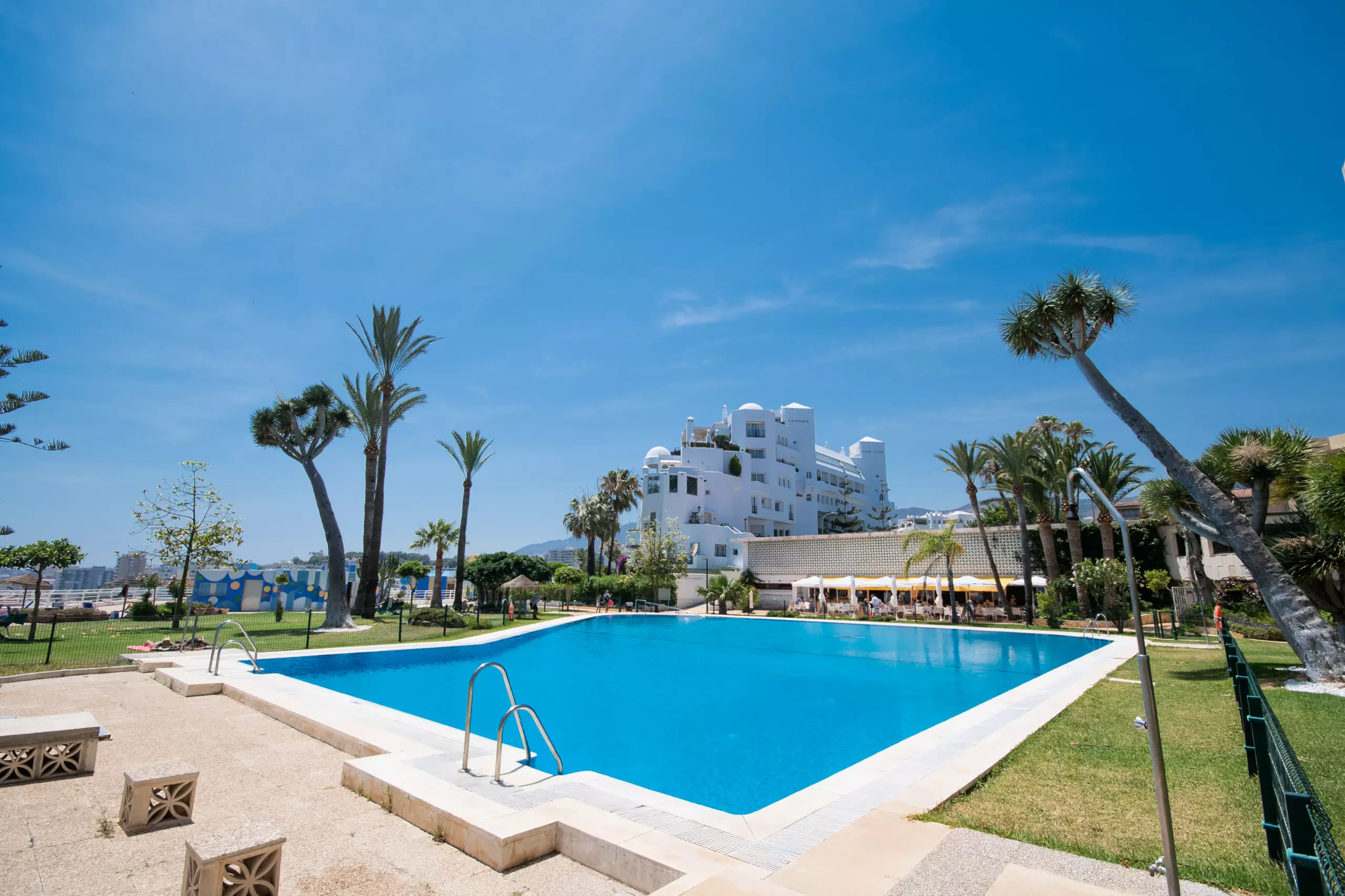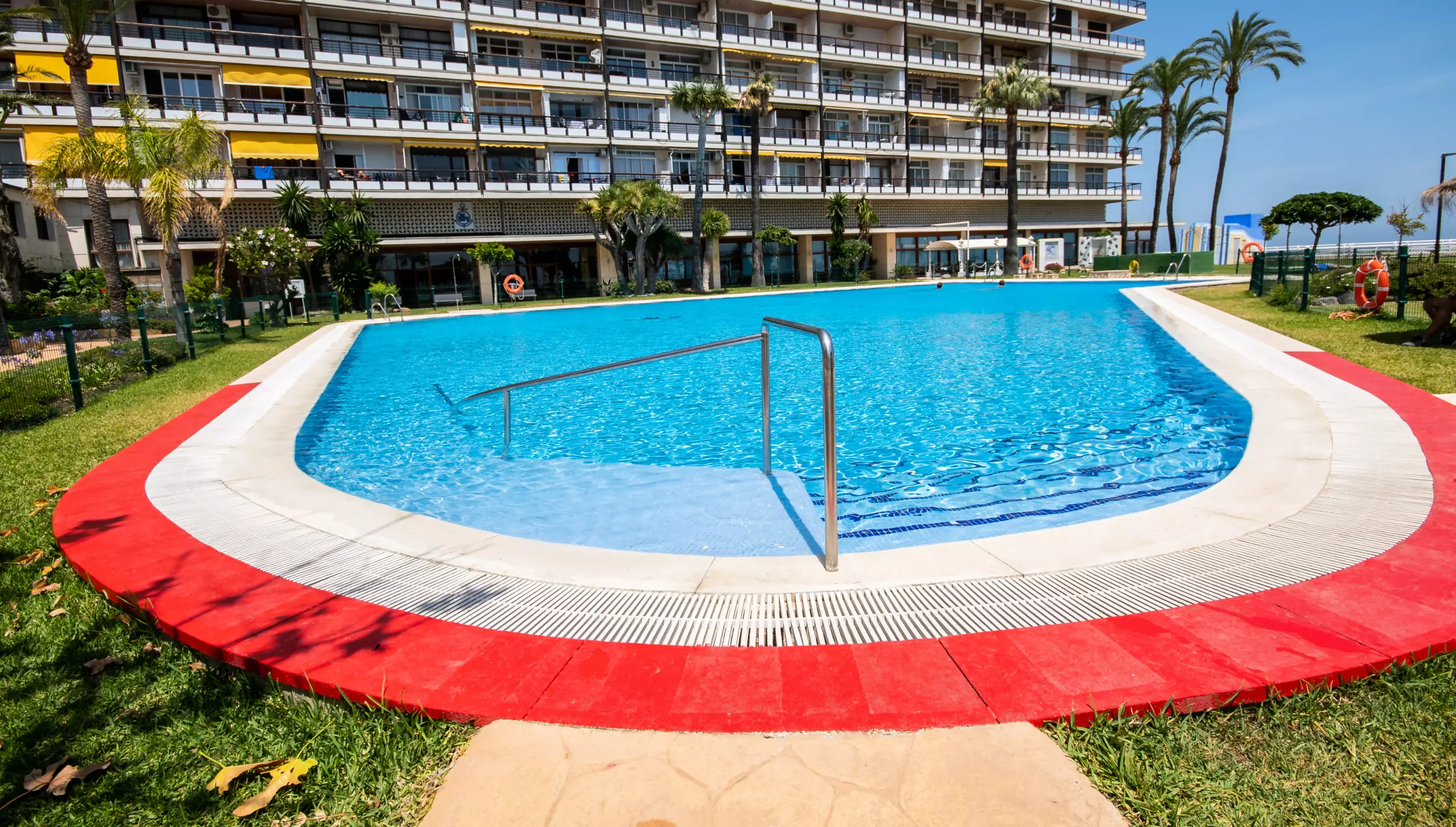 Le complexe dispose d'une grande piscine avec un accès pour les personnes à mobilité réduite, entourée d'un large belvédère avec du mobilier de jardin et un bar (consommations non incluses). Pour ceux qui voyagent avec des enfants, il y a une piscine spéciale pour eux et le périmètre des zones communes est entièrement clôturé pour leur sécurité. De plus, l'accès aux ascenseurs vers la plage est restreint au moyen de cartes codées, garantissant la confidentialité et la sécurité des invités.