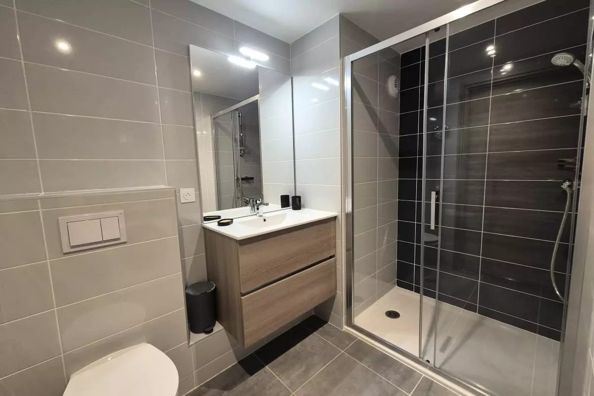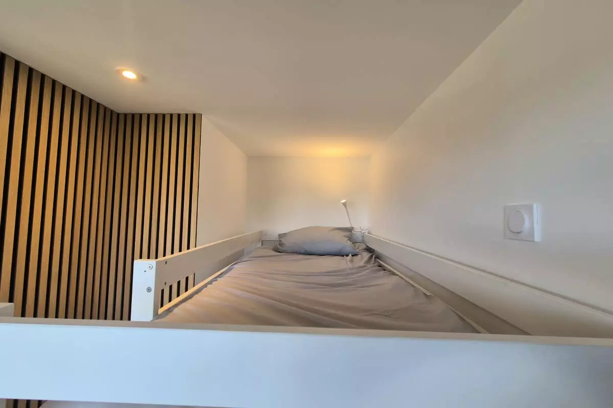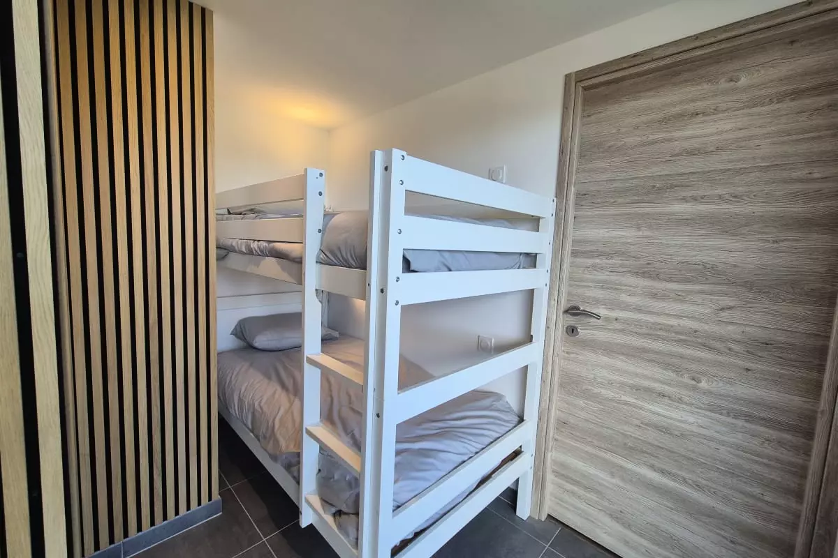 Vous trouverez une grande chambre avec grand placard de rangement, ainsi qu'un coin nuit cosy, parfait pour les enfants. Tout est prévu pour un séjour serein en famille : lit parapluie, baignoire pour bébé et tout le confort nécessaire. La salle d'eau moderne, avec sa douche spacieuse, complète ce magnifique appartement.