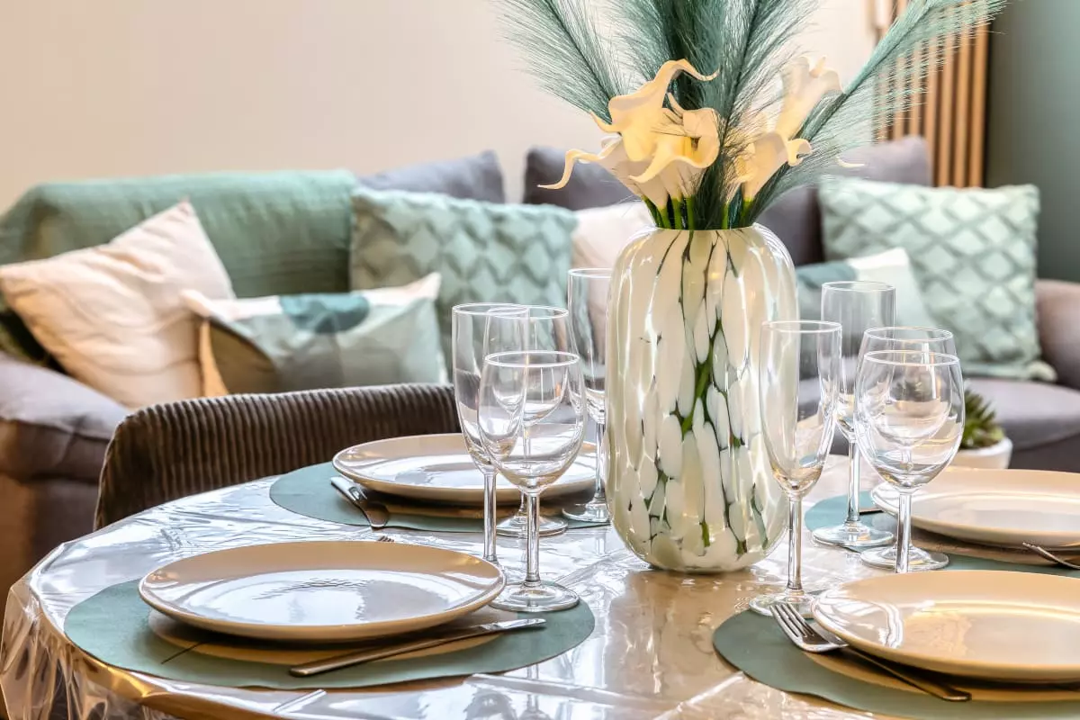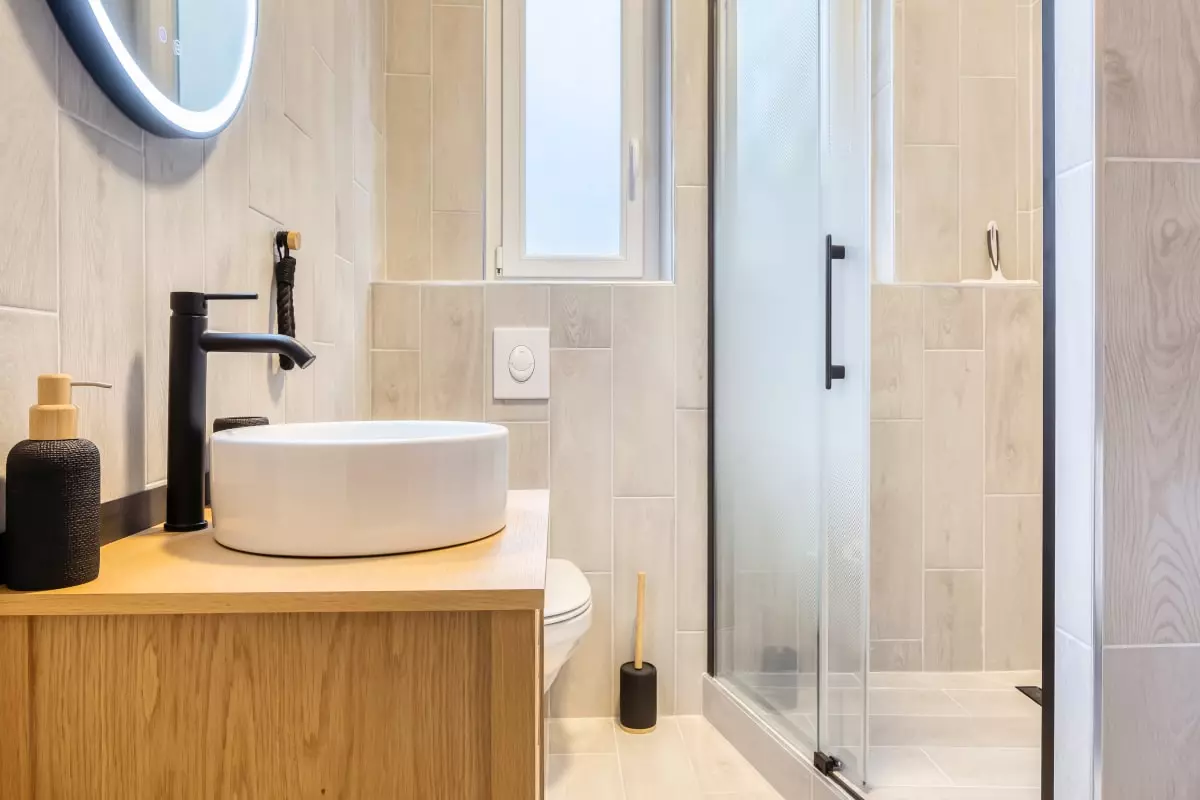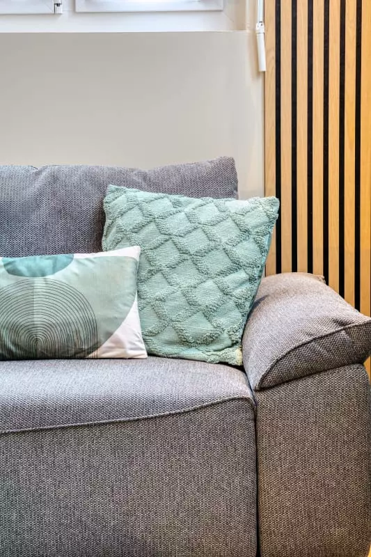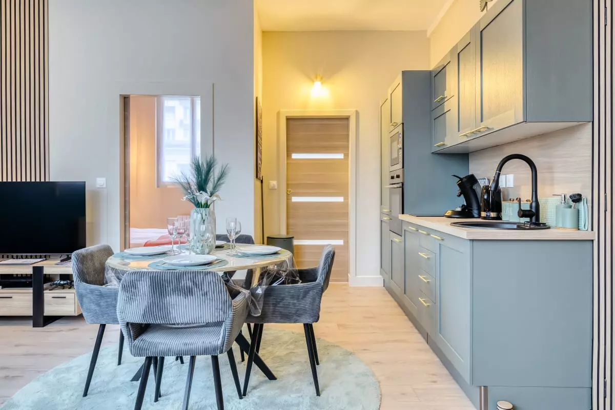 En poussant la porte, vous découvrez un séjour chaleureux où l’on a envie de ralentir et de poser ses valises. Un coin repas vous attend pour partager un petit-déjeuner ou un dîner à quatre, tandis qu’un canapé confortable, convertible en couchage d’appoint (linge de maison et de lit disponible pour le deuxième couchage sur simple demande à notre conciergerie en supplément à 12€), fait face à la télévision pour vos soirées détente. La lumière glisse le long des murs pastel et donne au lieu une ambiance douce, propice au repos après une journée de travail ou de visites.