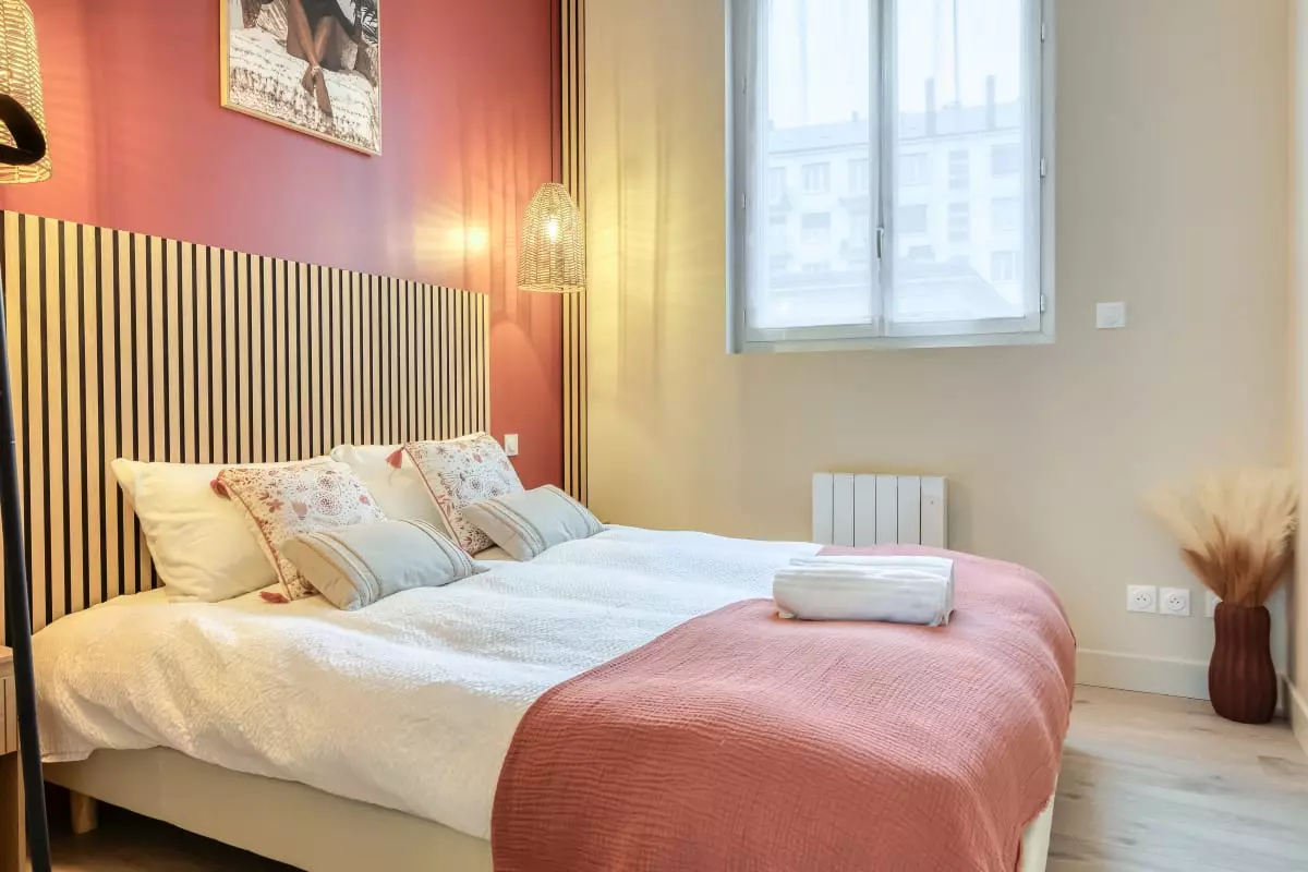 Bienvenue au TERRACOTTA, un cocon aux tons pastels niché rue Saint-Denis, en plein cœur de Rouen. Dès votre arrivée, vous êtes envelopé par une atmosphère douce et apaisante : les couleurs terracotta et poudrées se mêlent à une décoration soignée pour créer un véritable refuge en ville. Entièrement refait à neuf en novembre 2025, cet F2 de 38 m² vous accueille au premier étage d’une résidence avec ascenseur, au pied du cinéma l’Omnia et à deux pas de la Cathédrale, des commerces et des restaurants.