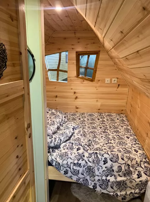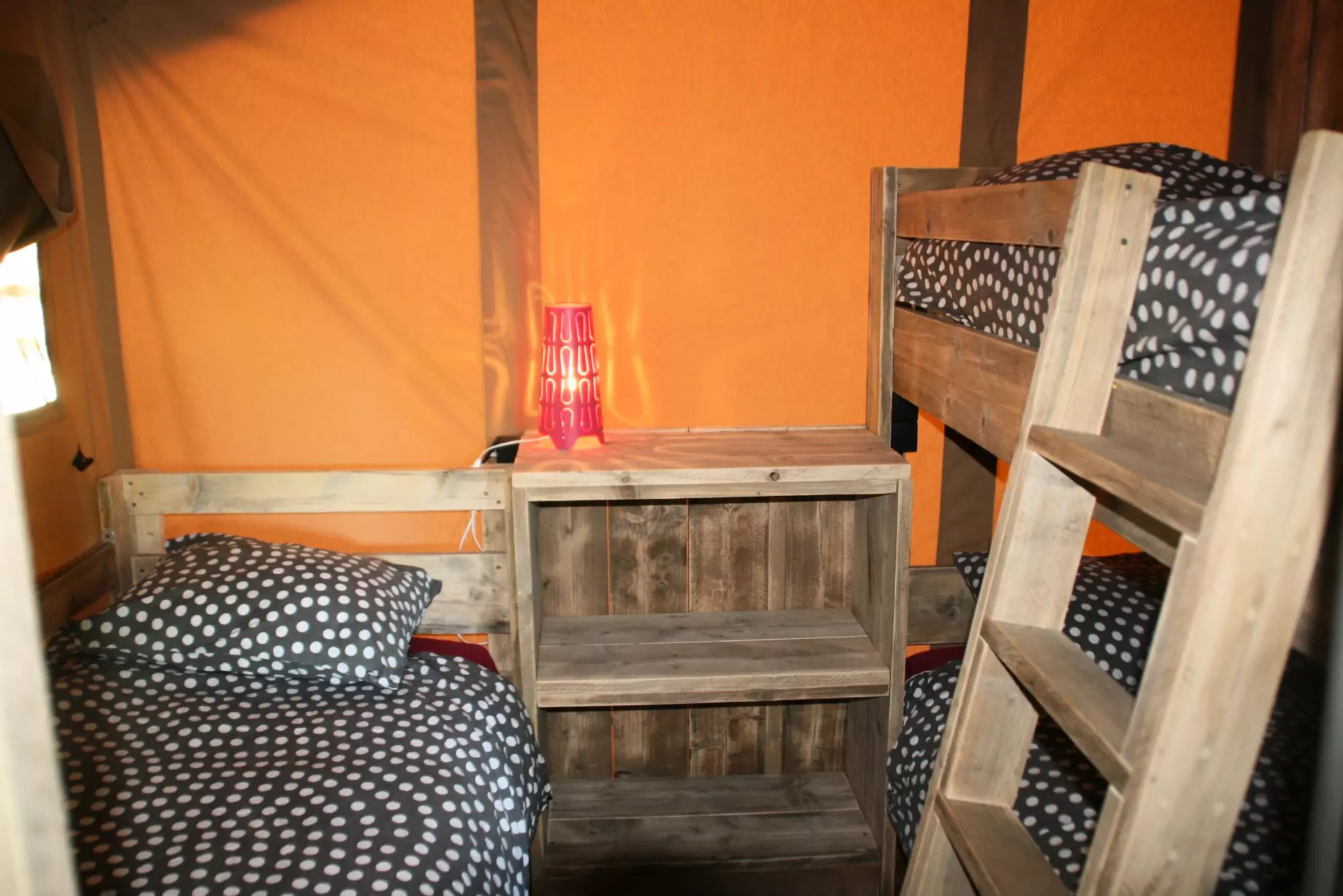 Tente avec strucutre et lits supperposés en bois avec matelas pour 2 personnes