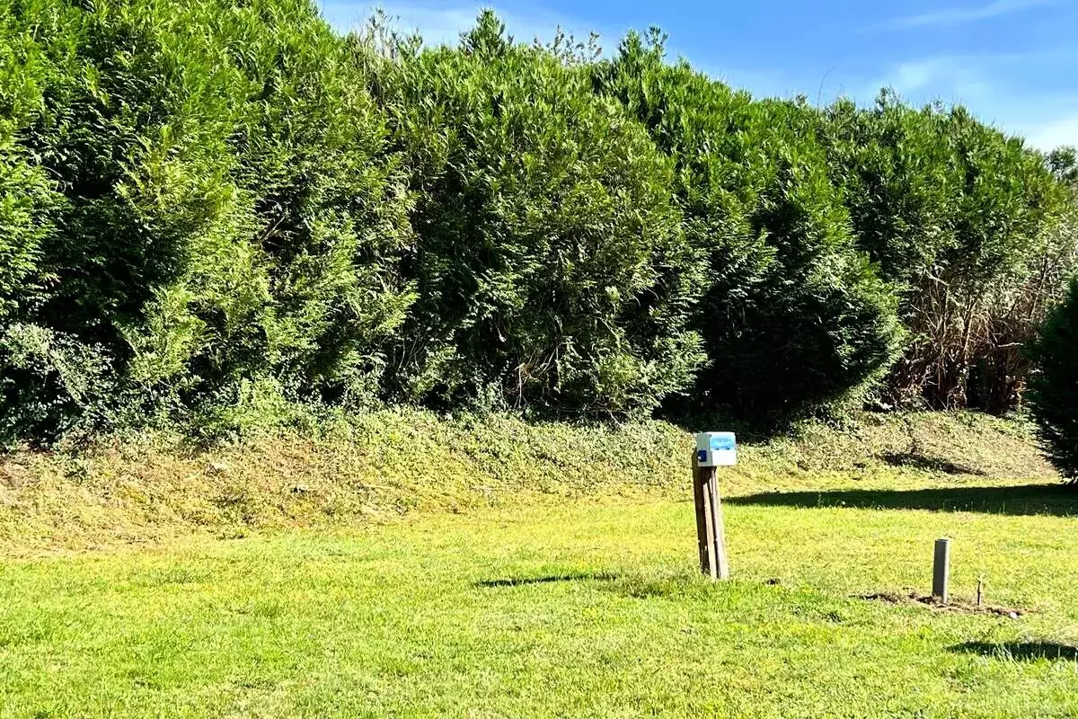 Emplacement avec une dalle, électricité, évacuation eaux noires, et point d'eau.