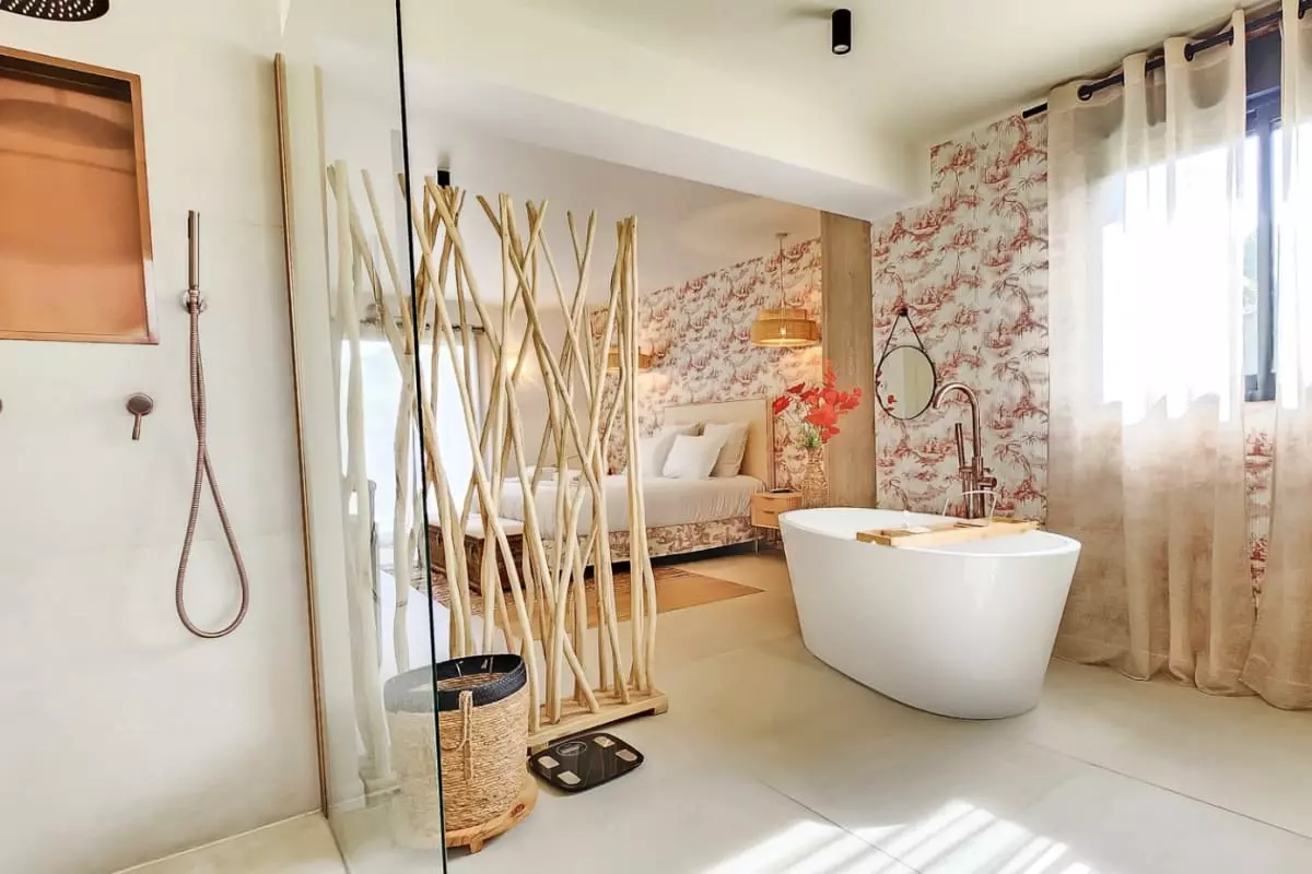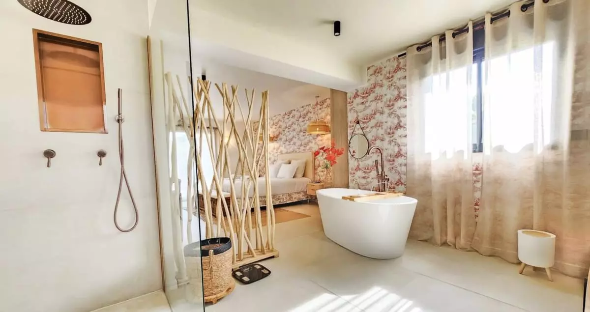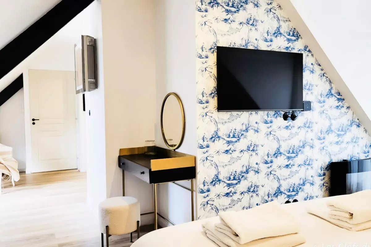 - une suite parentale élégante avec lit double 160x200, salle de bains privative, douche, WC et TV,