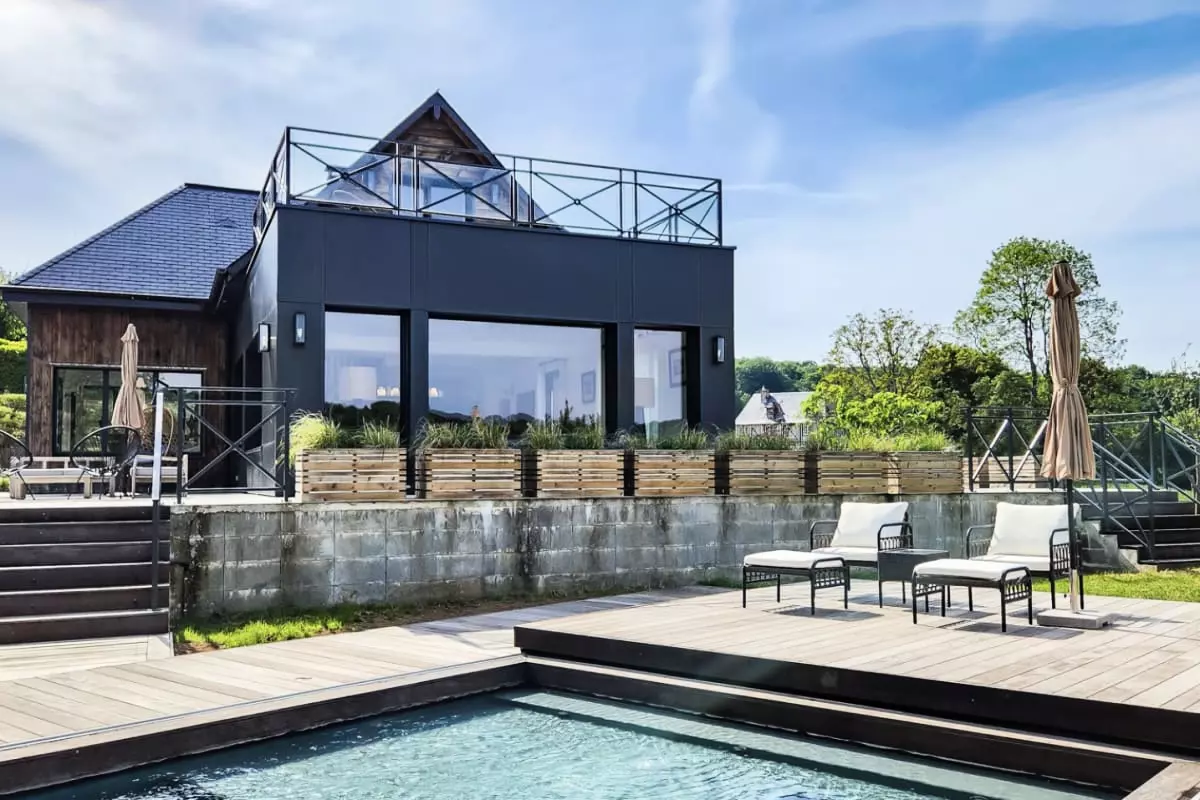 Profitez d'un séjour inoubliable dans cette somptueuse villa à Vieux-Bourg, alliant confort moderne et charme authentique, à deux pas des célèbres plages de Deauville et des merveilles d'Honfleur. Cette élégante propriété de 260 m² avec piscine chauffée peut accueillir jusqu'à 10 personnes, idéale pour des vacances en famille ou entre amis.