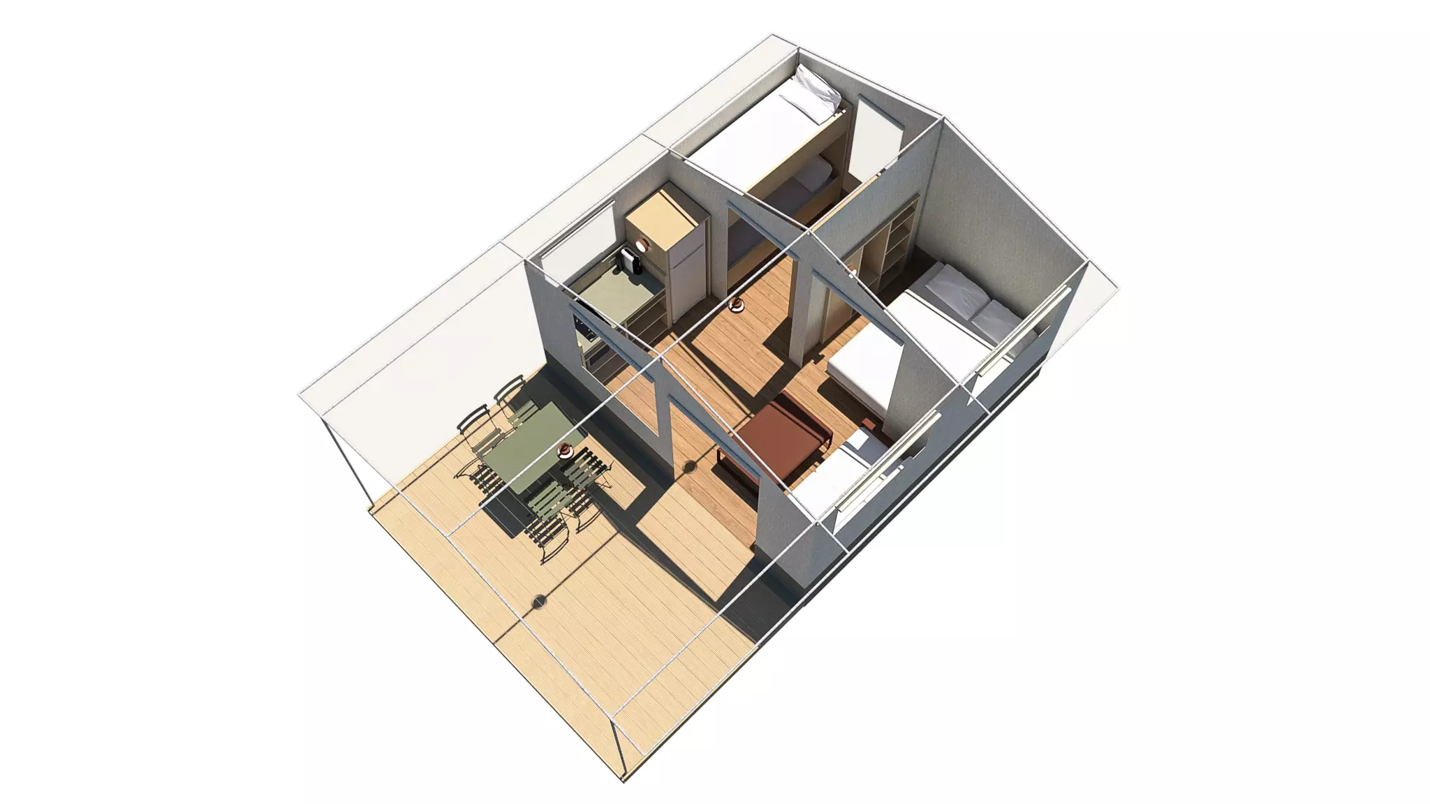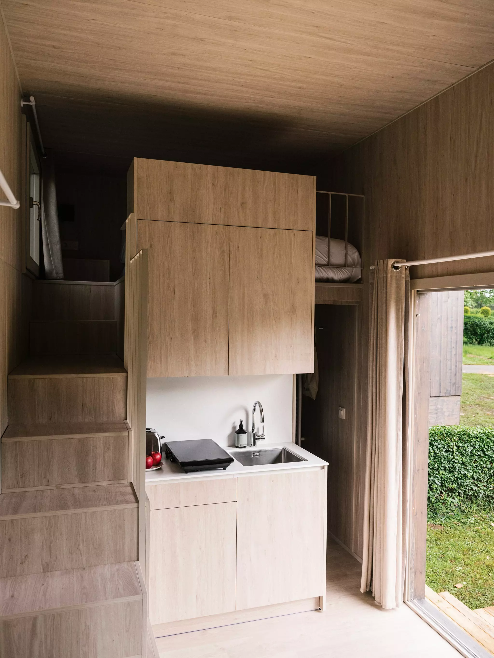 Nos Tiny homes, pour 4 personnes, ont été créés pour vous redonner un sentiment de liberté en vous connectant à l'essentiel : l'environnement naturel. Construites intelligemment pour offrir différents espaces et sur mesure, il s'agit d'un espace unique avec deux lits doubles.