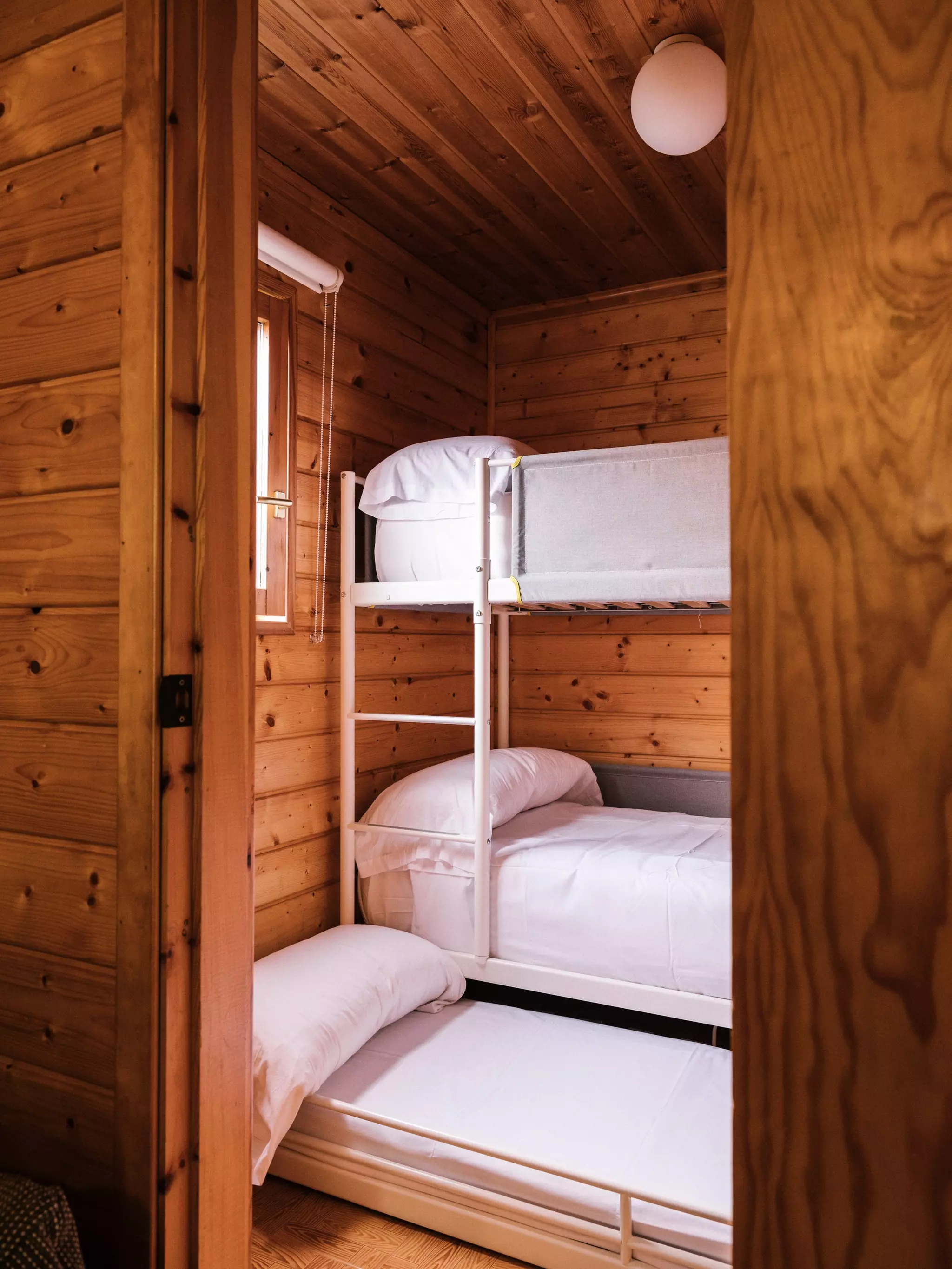 Le Bungalow Basic Family est parfait pour les familles jusqu'à 4 personnes à la recherche de confort en pleine nature. Il dispose de deux chambres: une avec un lit double et une autre avec des lits superposés.